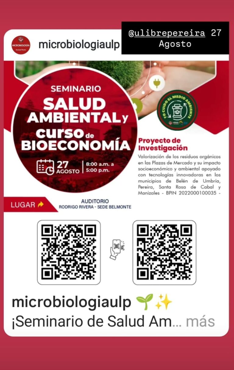 Seminario Salud Ambiental y Curso de Bioeconomía agosto 25, 2025 Seminario Salud Ambiental y Curso de Bioeconomía Read More »
